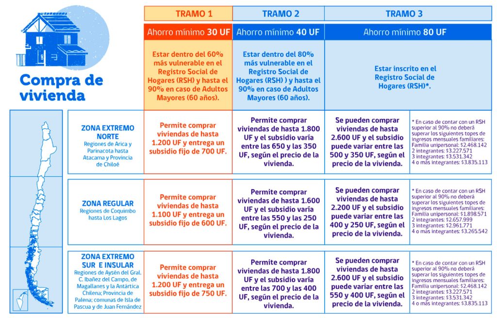 - Estar inscrito en el Registro Social de Hogares (RSH) y no superar el tramo del 60% de calificación socioeconómica. Las personas Adultas Mayores que postulen al Tramo 1 podrán pertenecer hasta el 90% más vulnerable de la población, de acuerdo con el RSH.