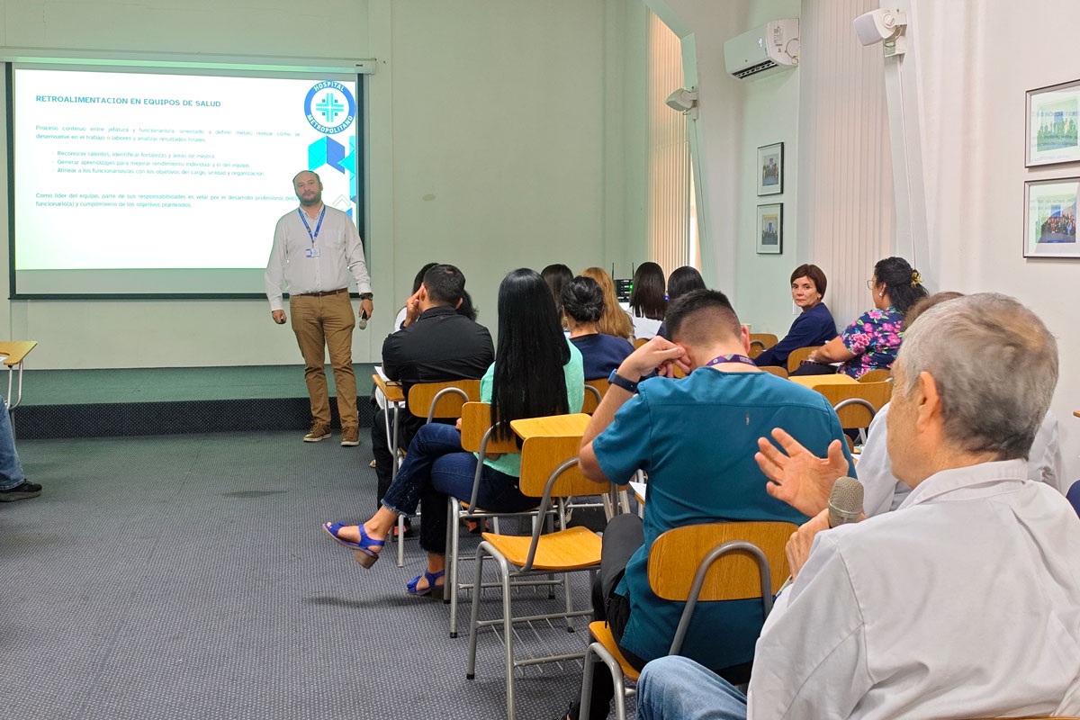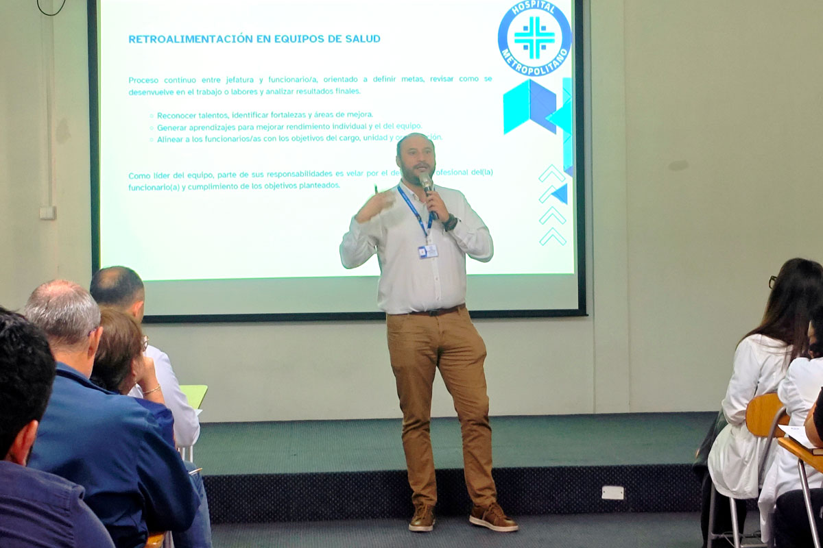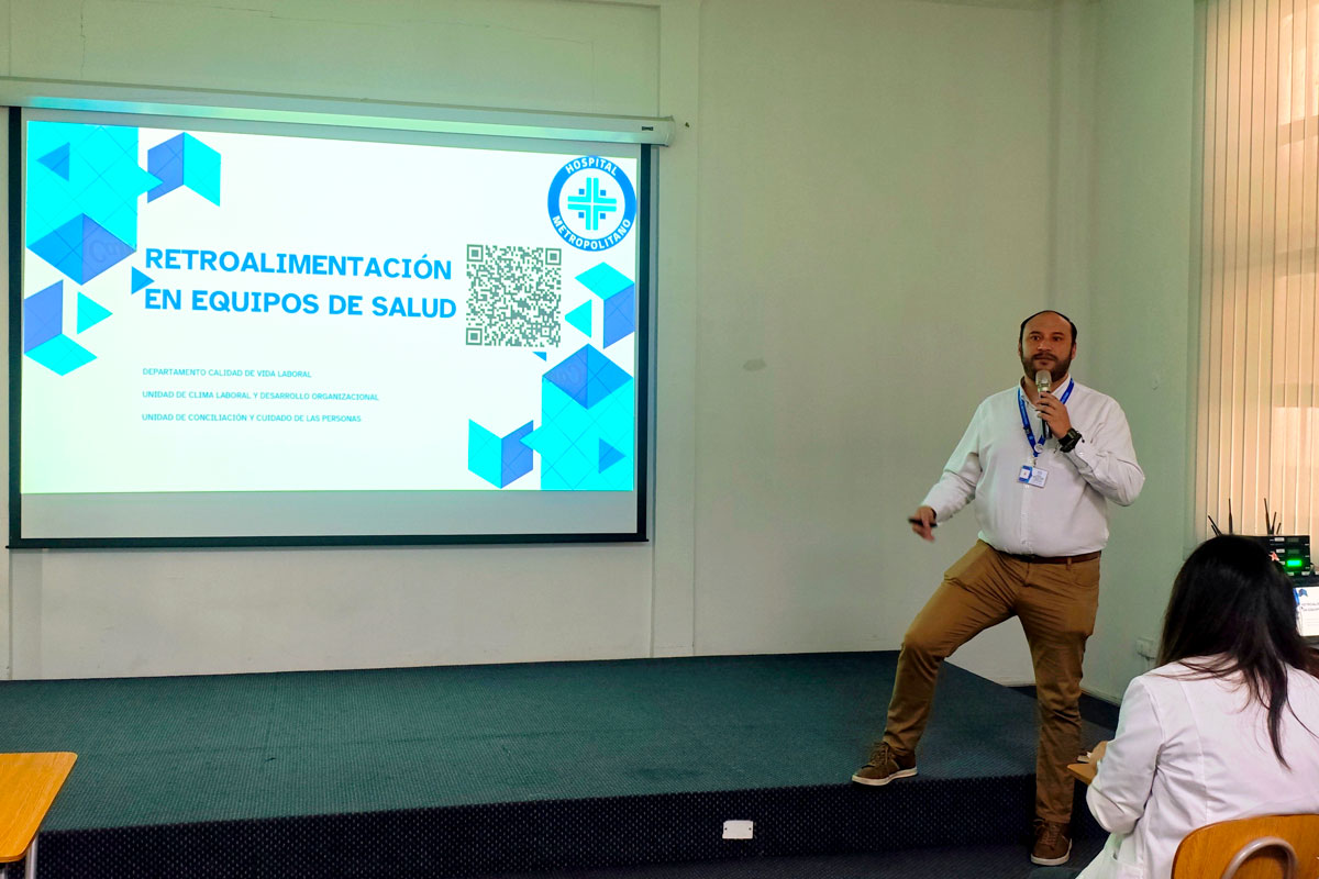 Enmarcada en una serie de actividades orientadas a fortalecer el liderazgo de las jefaturas y equipos del Hospital Metropolitano, el Departamento Calidad de Vida Laboral presentó la charla “Retroalimentación en equipos de salud”, jornada inicial que buscó identificar aspectos de mejora sobre relaciones laborales en los departamentos y unidades de nuestro recinto.